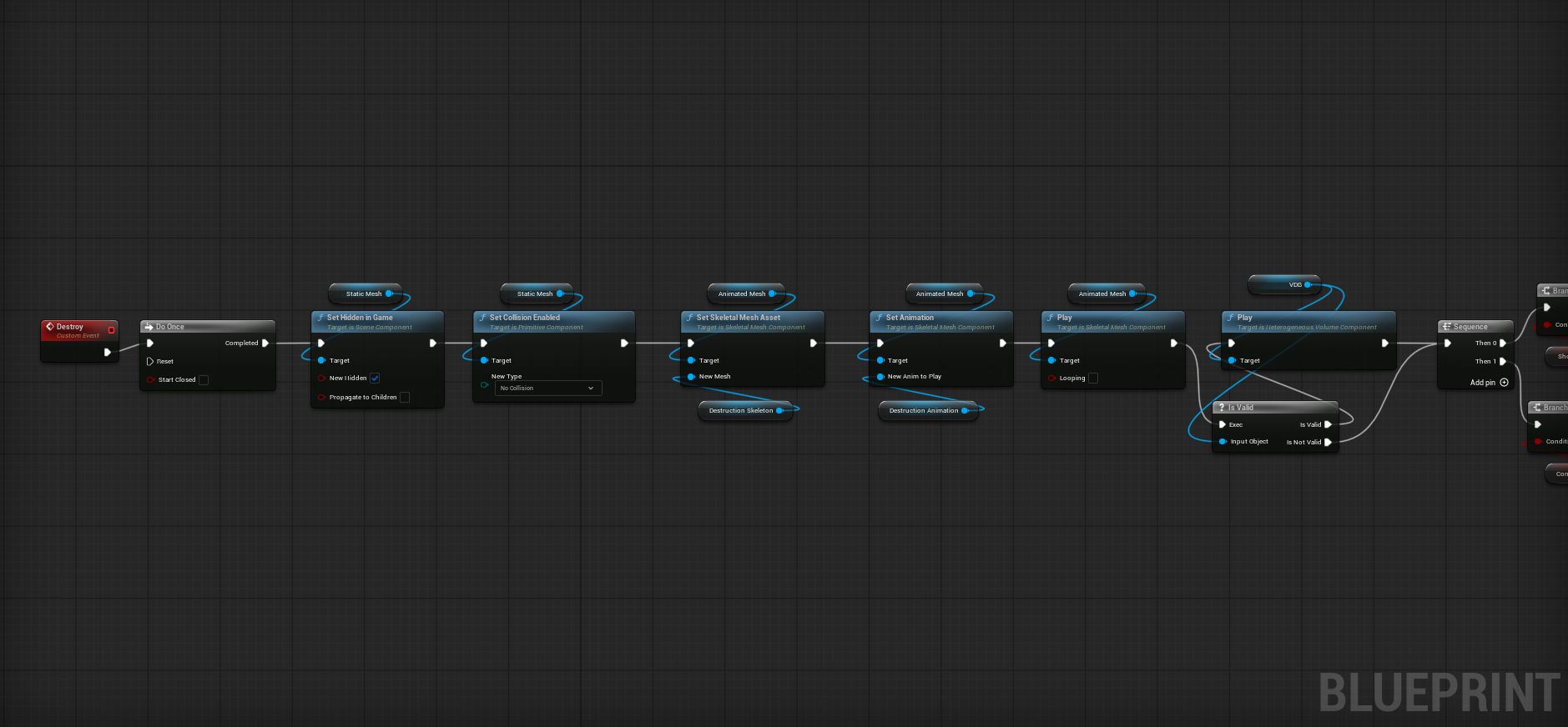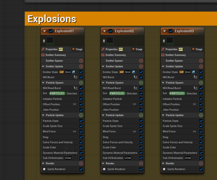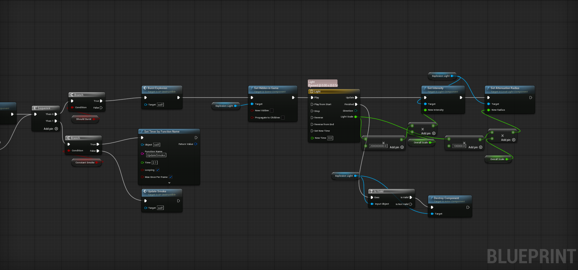 Then multiple options can activate due to input settings of the asset. Like a burst light and explosions spawned in from data channels.